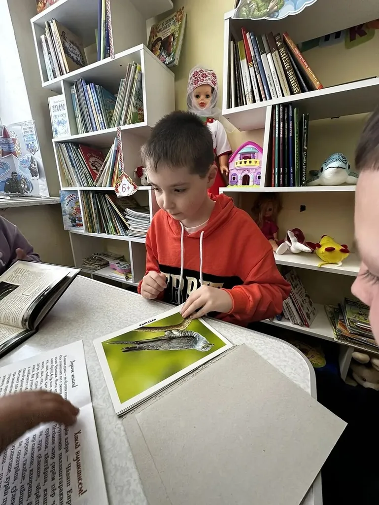 Встреча началась с короткой познавательной беседы. Библиотекарь рассказала ребятам об удивительном разнообразии птиц — от крошечных колибри до величественных орлов, о перелётных и зимующих птицах нашего края. Говорили о том, какую важную роль пернатые играют в экосистеме: распространяют семена, регулируют численность насекомых, служат пищей для других животных. Затронули тему о том, как люди могут помогать птицам в разные сезоны — например, строить кормушки и скворечники. Затем началась викторина — самая захватывающая часть программы. Юные участники с энтузиазмом отвечали на вопросы и выполняли задания. После интеллектуальных испытаний дети перешли к творчеству: они с удовольствием раскрашивали изображения разных птиц.