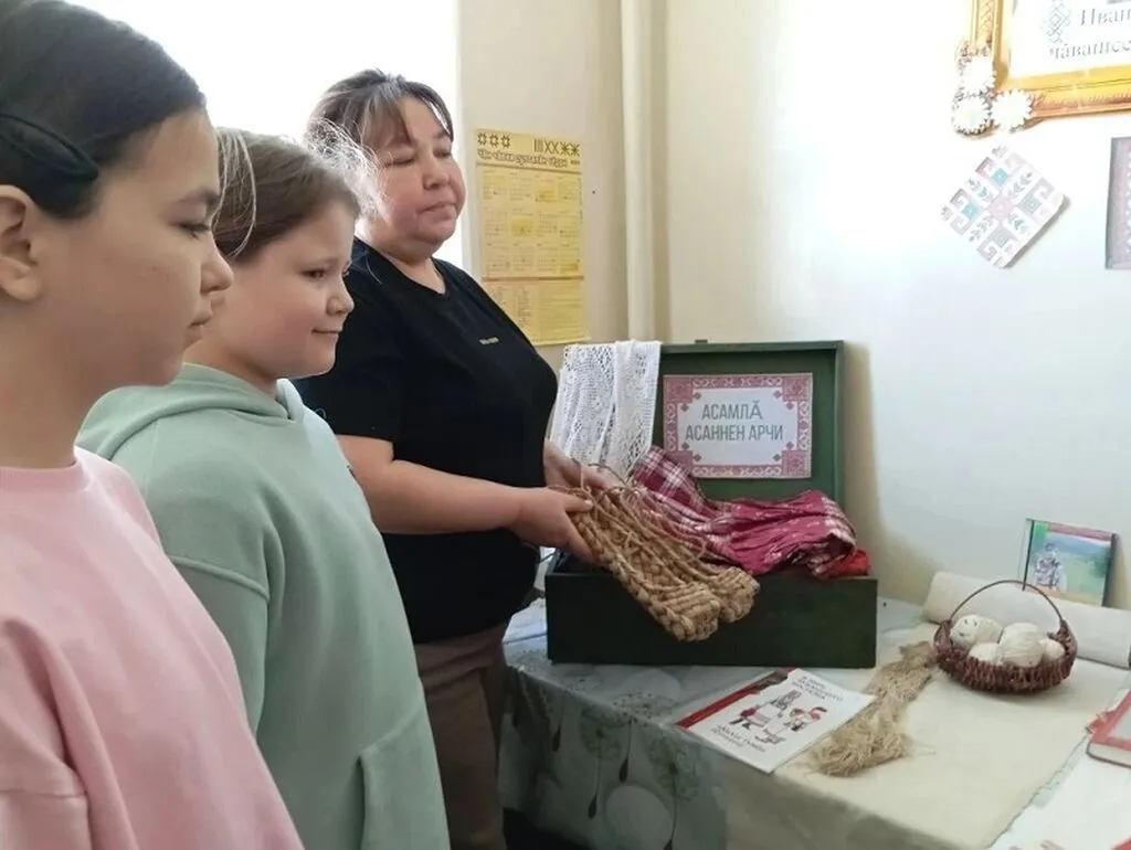 Затем участники заглянули на выставку-инсталляцию «Волшебный бабушкин сундук» (Асамла асанне арчи). Старинные предметы быта вызвали бурю эмоций. Юные читатели познакомились с предметами старины, узнали об их назначении и роли в жизни чувашского народа. Особый восторг у девочек вызвал традиционный женский головной убор — хушпу. Возможность примерить этот элемент национального костюма позволила не просто увидеть, но и прочувствовать связь времён, лучше понять эстетику и обычаи предков.